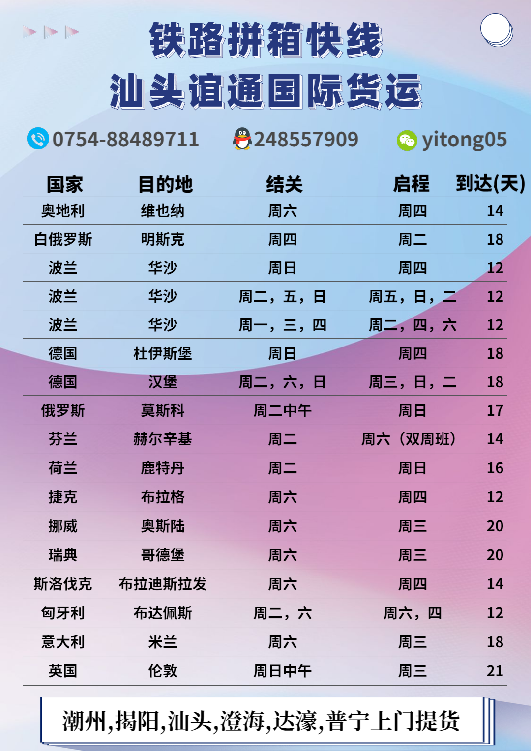 汕頭澄海潮州揭陽到歐洲鐵路拼箱